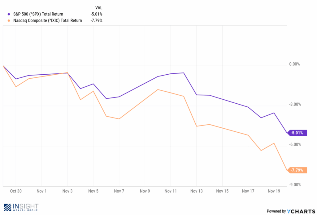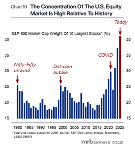 As we have discussed in recent memos, that concentration has started to lead to some concerns among market participants. Specifically, about the cost of buildout for the newly required AI infrastructure and how that expenditure would benefit investors. And it was realized – to a degree – in late October when Meta announced a much larger (and debt financed) spend in 2026. Their stock was punished – to the tune of 12% in a day – which correlated with the drawdown we saw in equities over the coming weeks.