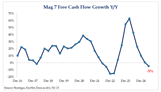 There are reasons to be concerned. For one, free cashflow for the Mag 7 is declining after massive growth. The reason is the AI spend. But it indicates that the growth cannot go on unabated forever (at least without significant indebtedness).