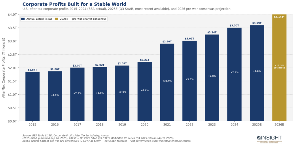 And the estimates for 2026 were that this march would not just continue but accelerate. FactSet is estimating 15.3% growth in profits. Barring 2021, that would be the biggest jump in a decade.