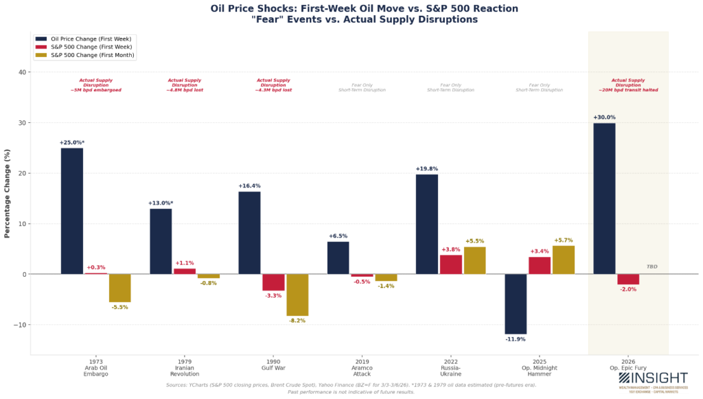 We don’t pretend to know how this resolves. Is it possible that the war is resolved quickly, the Strait reopens, and oil markets go back to normal? Of course. But there has never been a time in modern history where the infrastructure for moving oil has been this impacted. And while the market’s muscle memory from earlier oil scares (buy the dip!) sounds great, this may be a longer and more protracted issue than the experts seem to hope.