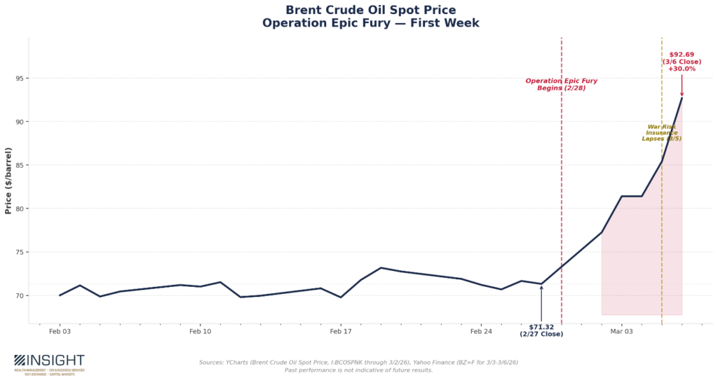 The oil market at this moment is different. Brent Crude rose 30% last week. That’s the biggest five-day price increase of any geopolitical oil shock in the modern era.