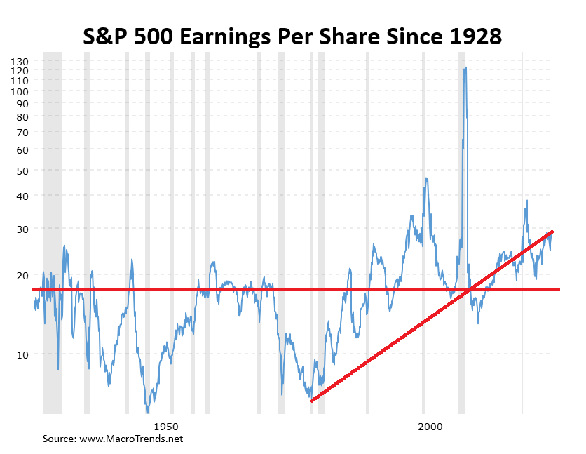 But trends matter, too, in this discussion. And there has been a clear trend since March of 1980 when the S&P 500 hit a P/E low of 6.68x.